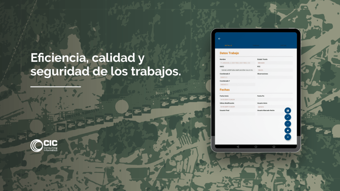 El campo de aplicación de este concepto abarca, desde la detección de la necesidad de realizar una actuación en campo, hasta el cierre de dicha actuación una vez está cumplimentada la información que, sobre dicha actuación, finalmente se ha realizado. Y, en cuanto al tipo de soluciones tecnológicas, en CIC Consulting Informático contemplamos tanto las que ayudan a incrementar la eficiencia, calidad y seguridad de la operativa, como las herramientas colaborativas que cambian sustancialmente las relaciones entre los actores del proceso.