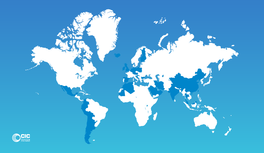 CIC ha consolidado su presencia internacional tras varios años de estrategias de expansión. Gracias a la colaboración con diversas entidades y a la realización de misiones comerciales en diferentes países, CIC ha logrado diversificar su negocio en términos de clientes, sectores y países, y hoy cuenta con proyectos abiertos en todos los continentes.