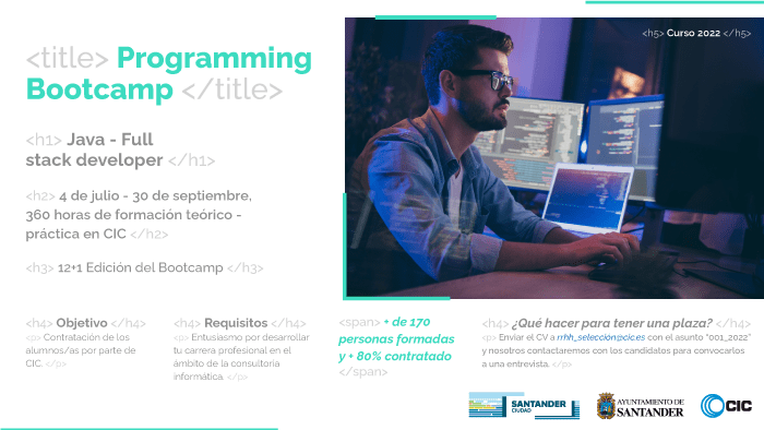 Un año más, el Ayuntamiento de Santander y CIC Consulting Informático organizamos una nueva edición del curso de verano “CIC Programming Bootcamp”.