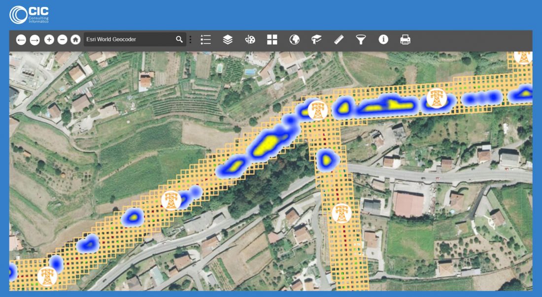 - Environmental risks: For each vegetation species the LiDAR flights detect, a coefficient is applied on the risks (trees falling, fire, stability, etc…)