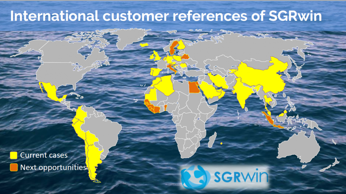 Actualmente SGRwin está instalado en 35 países con 135 referencias (95 en Europa, de las cuales 52 en España, 15 en LATAM, 5 en África y 20 en Asía), siendo una cuarta parte del sector del ferrocarril.