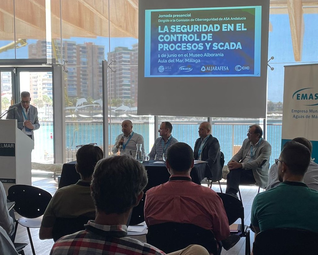 ASA Andalucía ha organizado en colaboración con CIC, esta sesión presencial dirigida principalmente a la Comisión de Ciberseguridad de ASA, en la que también han participado otras entidades asociadas como la Empresa Municipal de Aguas de Málaga EMASA, anfitriona de la cita y colaboradora en su organización, y la Empresa Mancomunada del Aljarafe ALJARAFESA.