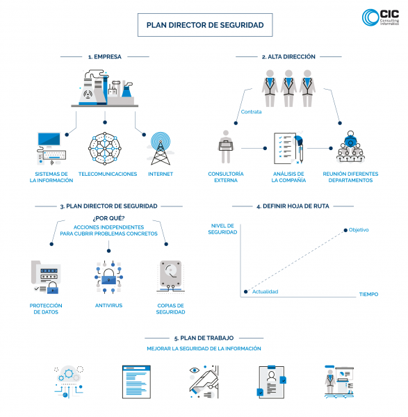 Las Compañías, han de entender que, dentro de sus planes estratégicos, es prioritario para ellas invertir tiempo en la elaboración y definición de un Plan Director de Seguridad, asegurándose a través del mismo.